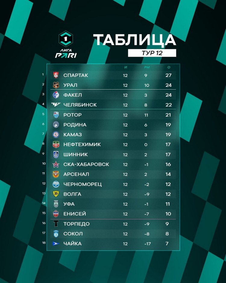 Турнирную таблицу возглавляет новичок Первой лиги — «Спартак» из Костромы. Команда стала одним из открытий сезона и уже успела покусать нескольких топов — например, «Ротор», «Урал», «Арсенал». На этот сезон перед ней стоит задача сохранения прописки в лиге. Соответственно, результат на ФК не давит.