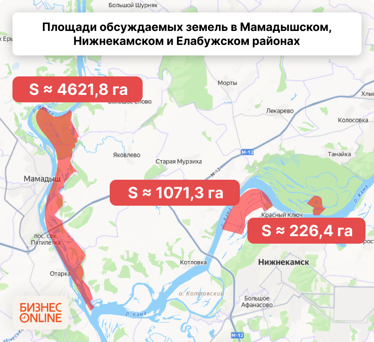 Дальше пошел глава Елабужского района Рустем Нуриев, который поддержал Беляева и направил письмо (также есть в распоряжении редакции) в министерство земельных и имущественных отношений РТ, а также главам Набережных Челнов, Нижнекамского, Тукаевского и Мамадышского районов. Он предлагает изменить границы и присоединить к Елабужскому району более 5,5 тыс. гектаров.
