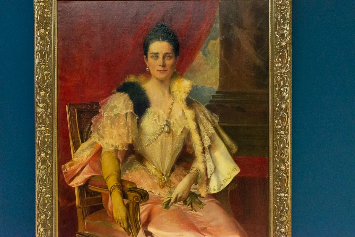 Портрет матери Феликса Юсупова Зинаиды Николаевны. На ней одно из самых роскошных украшений их семьи — жемчужина «Пелегрина», которую часто путают с другой знаменитой жемчужиной — «Перегрина», принадлежавшей Элизабет Тейлор. На самом деле Феликс Юсупов продал «Пелегрину» женевскому ювелиру в 1953 году. А в последний раз она «появилась на публике» в 1989-м в Женеве на аукционе Christie’s, где была продана неизвестному покупателю за $464 тысячи.