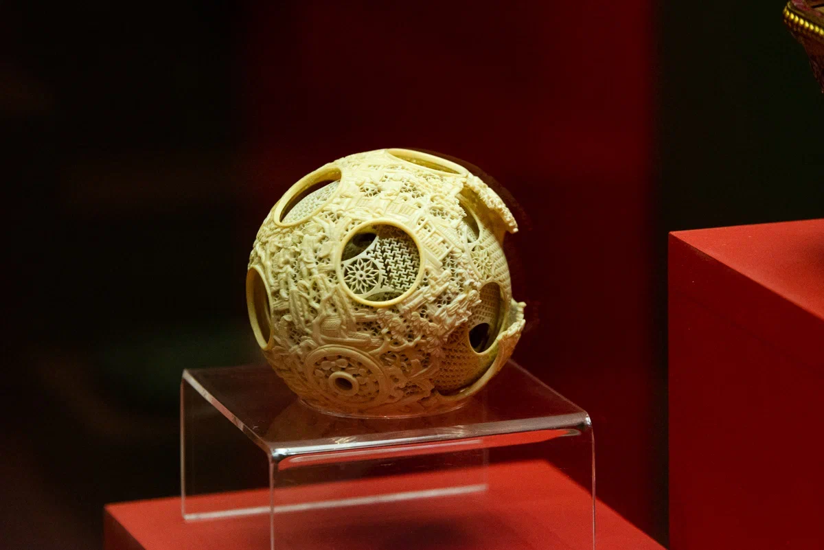 Один из самых загадочных экспонатов выставки. 7 неразборных крутящихся шаров из слоновой кости друг в друге. До сих пор неизвестно, как его создали.