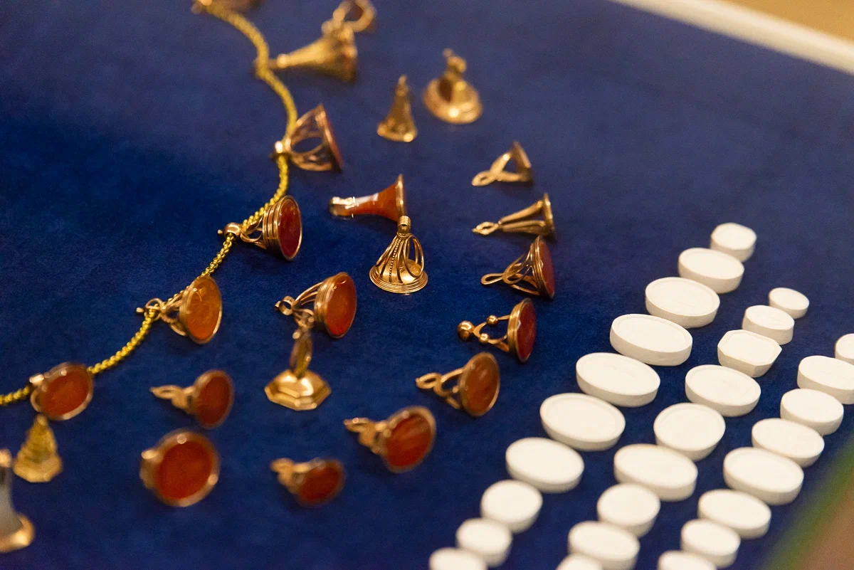 В последнем зале собраны личные вещи членов княжеской семьи. На снимке золотая цепь с геммами, которая принадлежала Татьяне Васильевне Юсуповой, племяннице графа Потемкина.