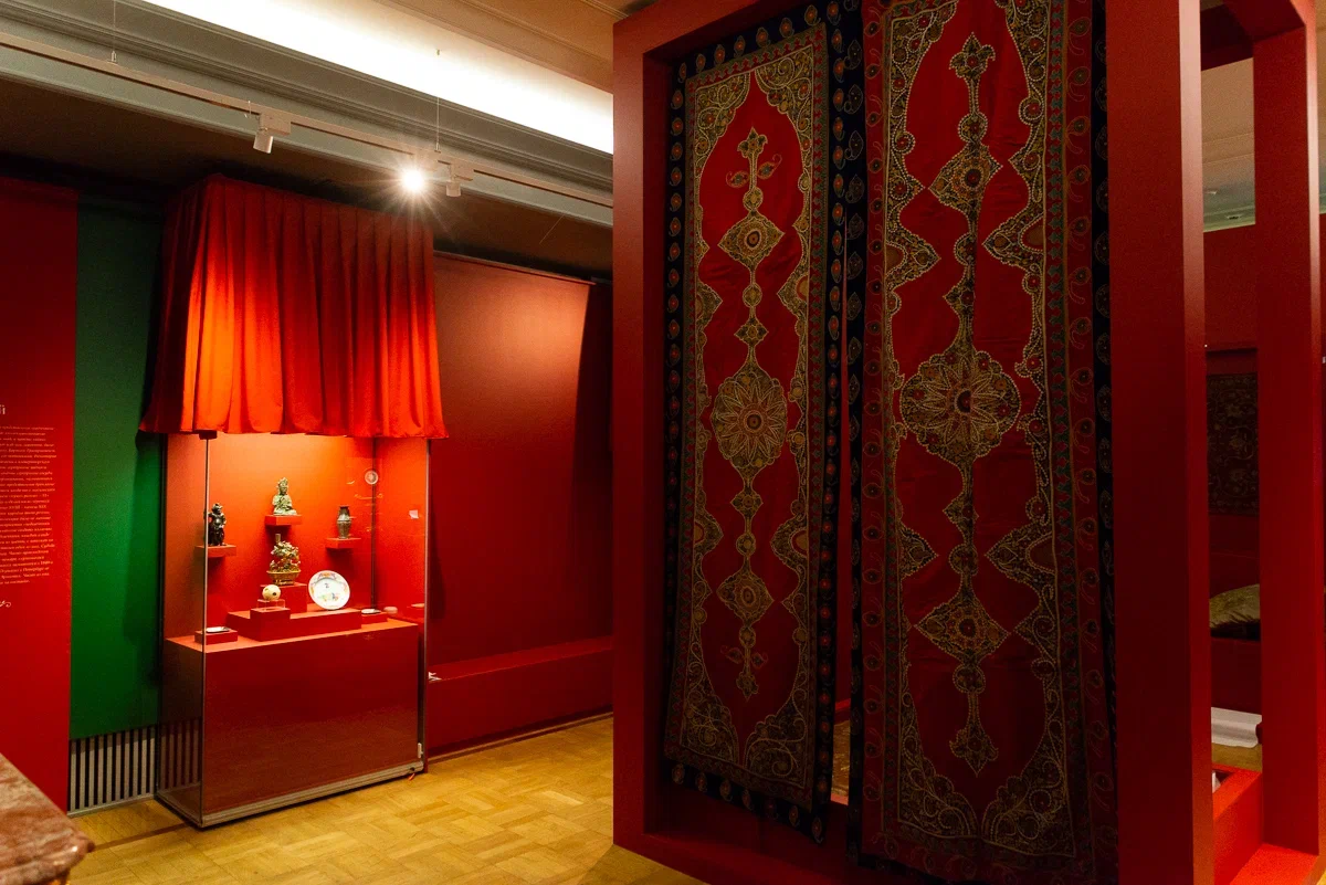 Пятый зал выставки посвящен восточной части коллекции Юсуповых. «Это связано и с их восточными корнями, безусловно, но это была еще и мода, потому что в XVIII и XIX веках возник большой интерес к восточным произведениям. О Востоке (Китай, Япония) узнали, вещи оттуда начали попадать на европейский рынок. Эти предметы завораживали Европу», — объясняет куратор выставки.