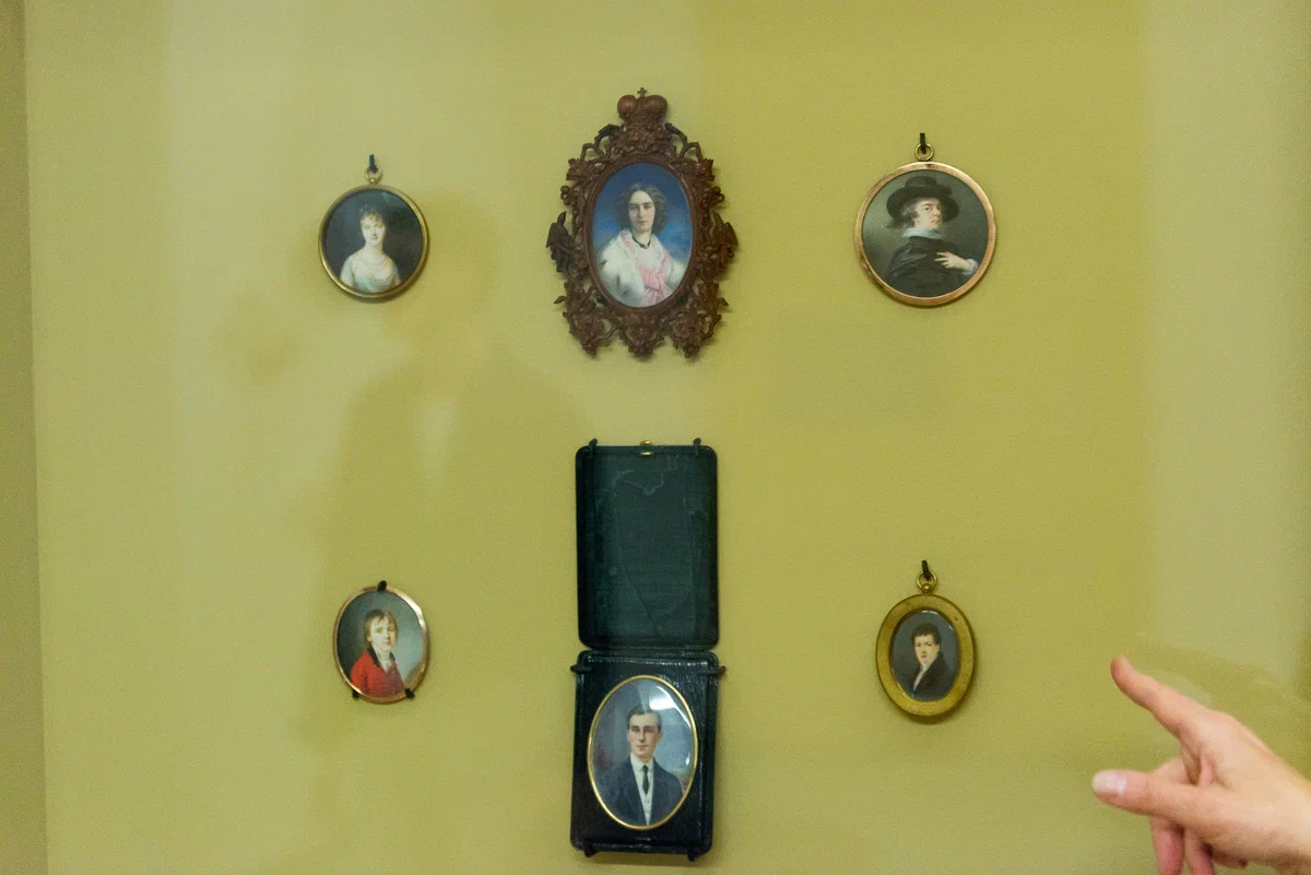 Члены семьи Юсуповых в миниатюре. В самом низу посередине единственный портрет Феликса Феликсовича Юсупова на выставке. Он был одним из тех, кто организовал убийство Григория Распутина. Кстати, вещей, связанных с последним, на выставке нет.