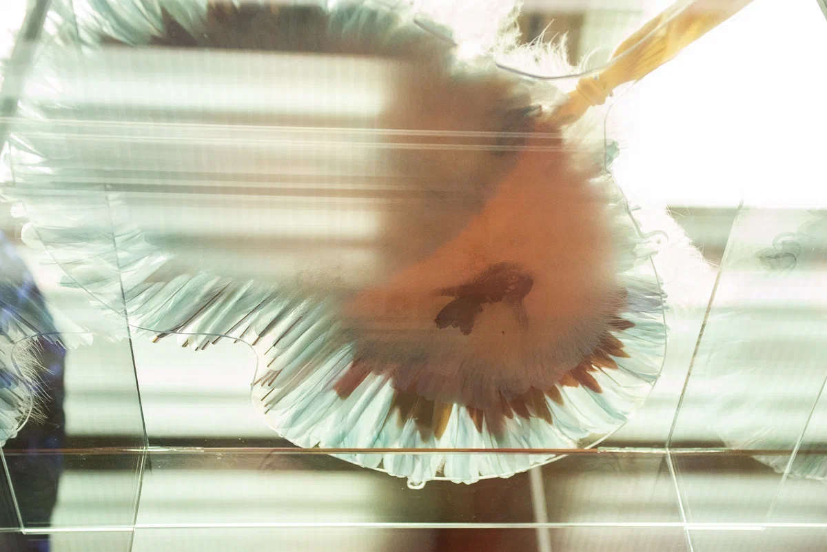 А у этого пушистого веера есть секрет: с обратный его стороны, с которой дама его держит к себе лицом, находится чучело колибри (на снимке).