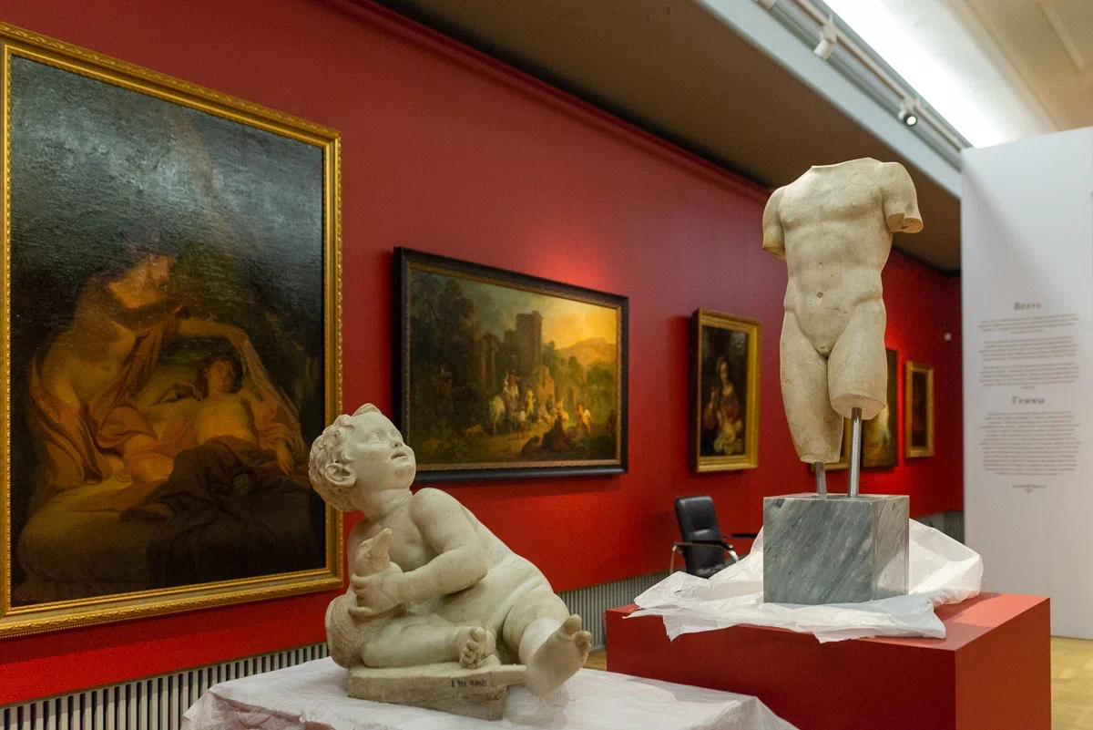 В первом зале вместе с античными скульптурами (на снимке — «Мальчик с гусем» и «Юноша-атлет») соседствуют работы итальянских и французских мастеров XVII–XVIII веков. Большинство посетителей вряд ли знают их имена, но в тот период времени, когда их собирали Юсупов-старший и остальные члены его семьи, эти художники были известными и характерными для своего времени, говорит Виленская. Например, французы Никола Ланкре, Франсуа Лемуан, Франсуа Буше и др. с которым лично был знаком Юсупов-старший.