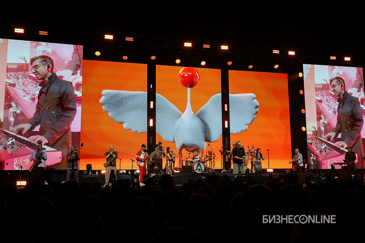 После неожиданного 20-минутного перерыва продолжилось все брутальным «Терминатором», а потом перешло на композицию из нового альбома про «полижи ежа». И казалось, что под вторую мужчины отплясывали так, как даже не могли девушки. А после огромный надувной гусь на трибунах слушал песню о себе — тоже из нового альбома.