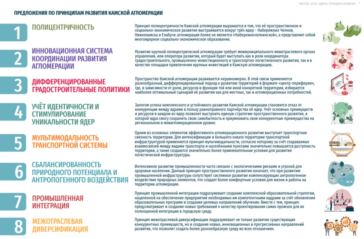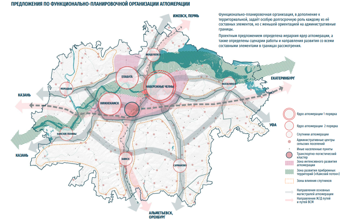 Трудности маятниковой миграции, разбалансированной застройки остались в границах Казанской агломерации. Для Закамья на первое место вынесли проблему моногородов, к которым относятся крупнейшие поселения территории: