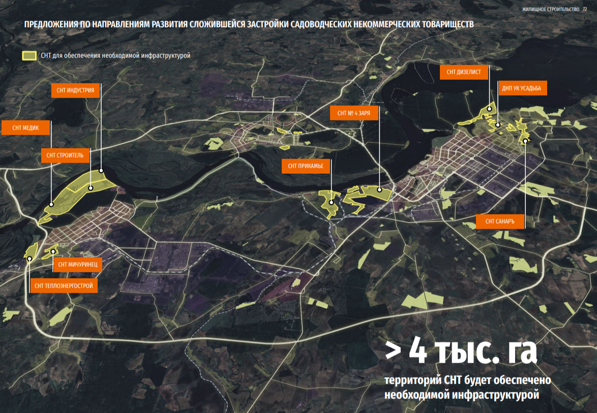 «СНТ выполняют функции рекреационных и жилых зон, некоторые уже являются вторым жильем для постоянного проживания, — говорится в мастер-плане. — В связи с этим необходимо обеспечить территории необходимой инфраструктурой, где концентрация второго жилья наибольшая».
