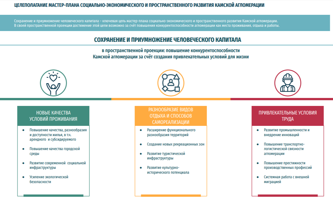 «Стратегия „Камский университет“ должна выстроить системную работу по созданию привлекательных условий для учебы и работы по профилю, не покидая территории Камской агломерации», — говорится в мастер-плане.