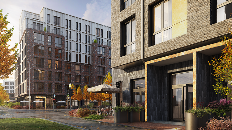 Фасады «Кастура Тауна» собраны из натуральных материалов, перекликающихся с оттенками прежних деревянных домов.