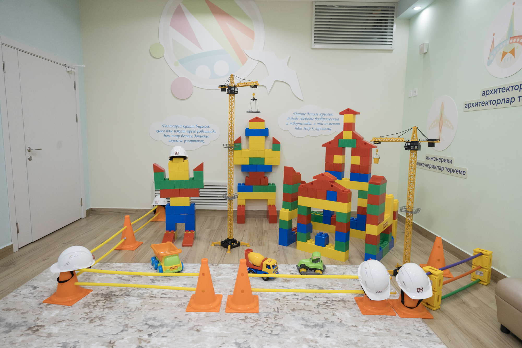В лаборатории изучают физику и создают схемы, на занятиях по робототехнике — программы для роботов. Логопед и преподаватель татарского языка работают с детьми. Сенсорная комната создана для релаксации с музыкой и приглушенным светом. В коридорах есть игровые зоны с конструкторами и шахматами.