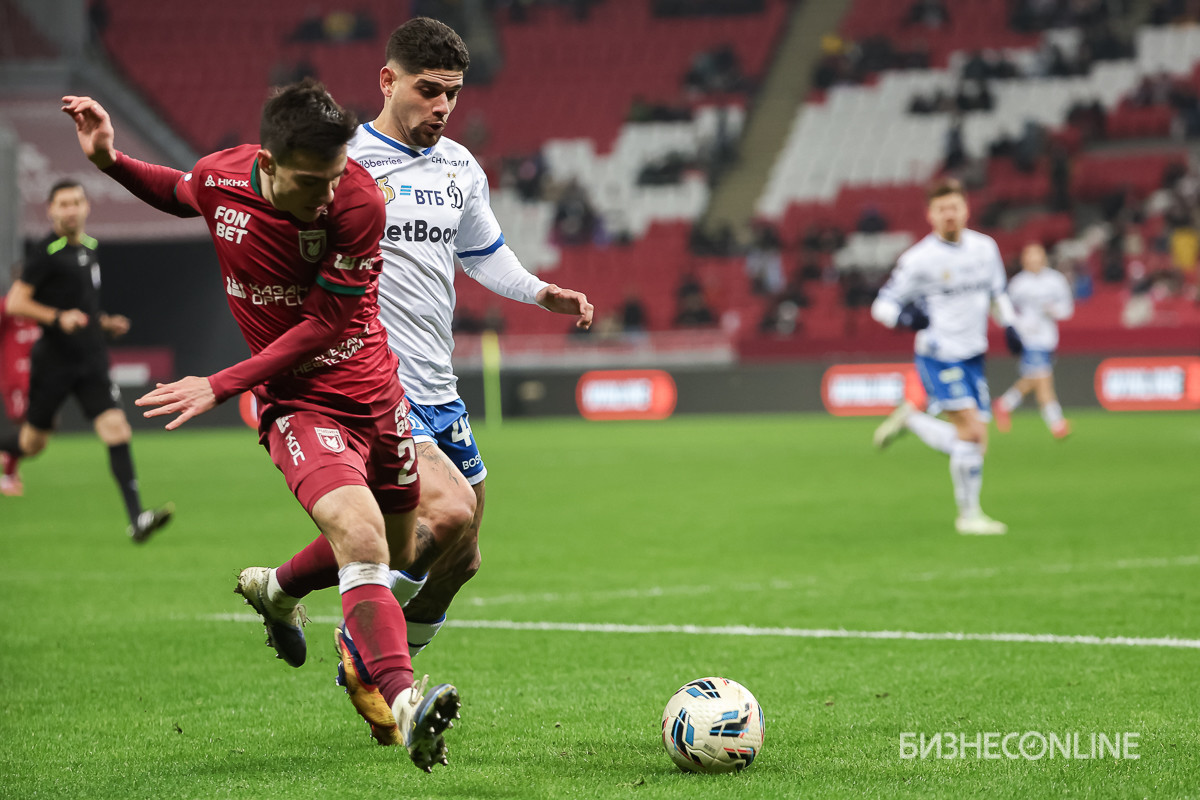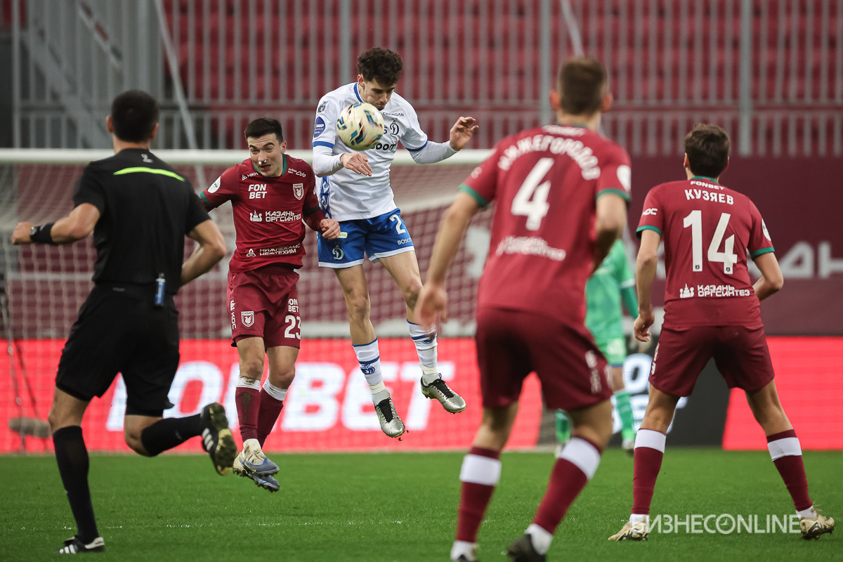 Уязвимое место в защите «Рубина» гости нашли ближе к середине тайма. Раз за разом динамовцы входили в штрафную через полуфланг между Андерсоном Арройо и Лобовым. В первом тайме у «Динамо» было три опасных момента — и все три оттуда. Ожидалось, что в перерыве в этой зоне Рахимов наведет порядок, однако заменен был не Лобов или Арройо, а Илья Рожков. Оказалось, что из-за травмы. Но коррективы все же были внесены.