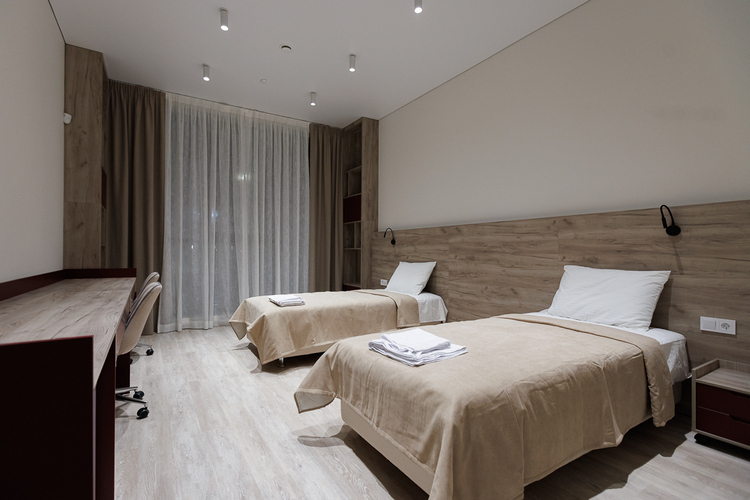 На втором этаже — жилые комнаты для воспитанниц клубной академии и женской команды «Рубина». Всего в общежитии 28 номеров на 78 человек. Есть досуговая зона.
