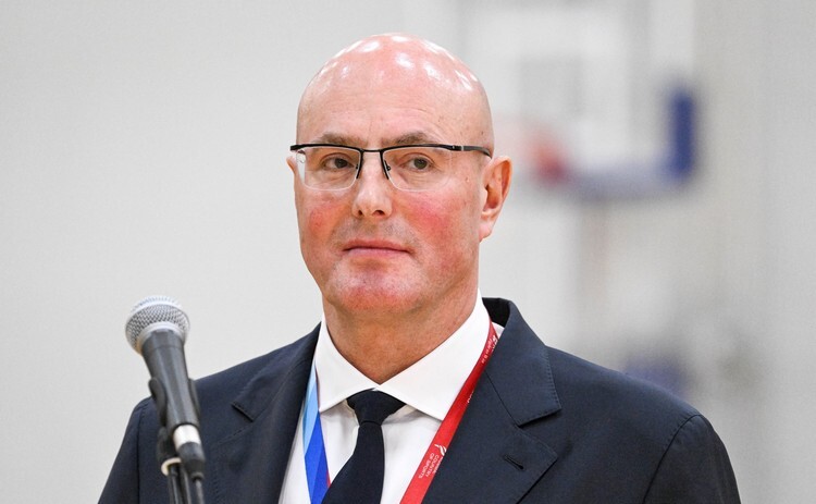 Далее слово передали Казани. О завершении строительных работ рассказал Песошин. Доклад он делал в компании президента «Рубина» Сафиуллина и детей из академии «Рубина».