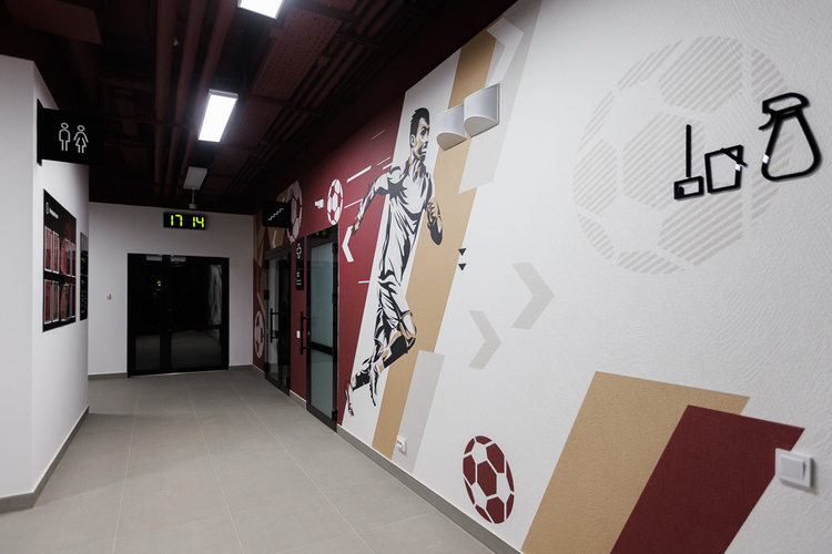 В общежитии, если вернуться к Казани, два этажа. На первом — 7 раздевалок, зона восстановления (с сауной, хаммамом и ледяными купелями), судейские комнаты, комната инспектора, медицинские кабинеты, кабинет допинг-контроля, зал пресс-конференций.