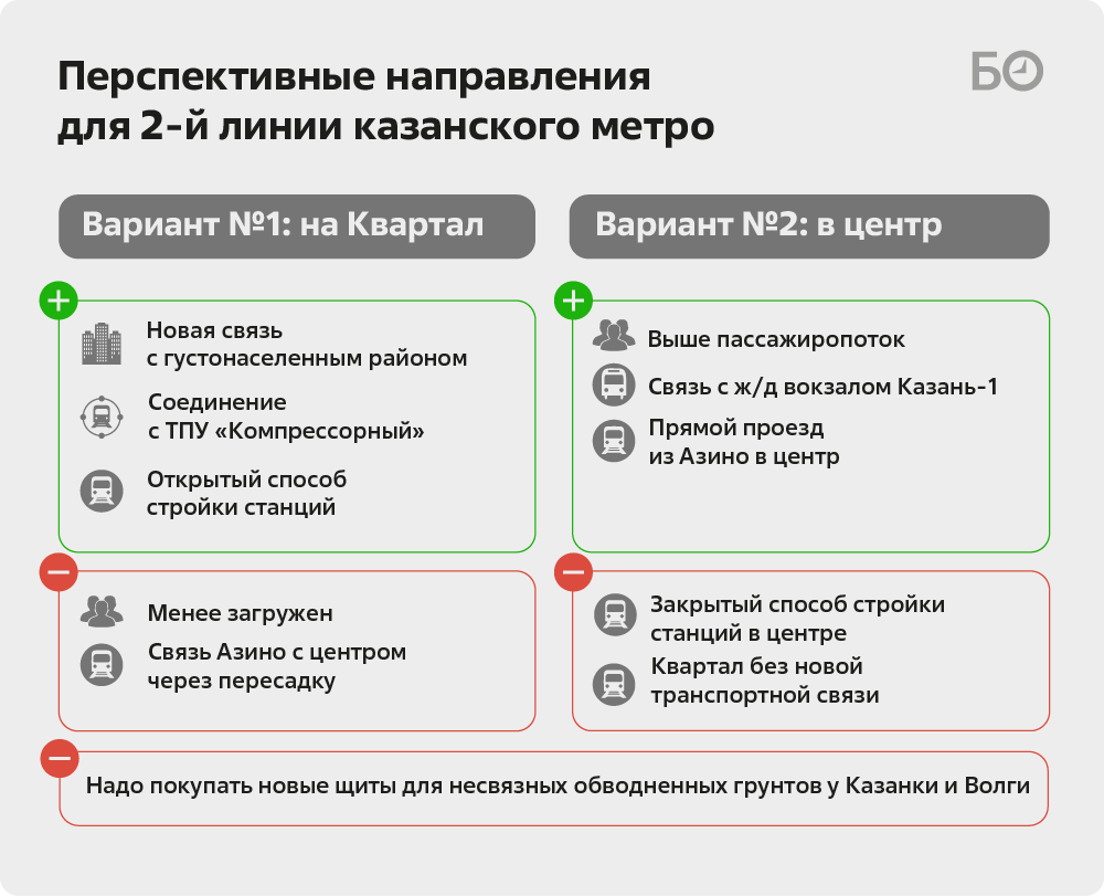 Из преимуществ варианта развития метрополитена на Квартал — транспортно-пересадочный узел «Компрессорный» с трамваями, троллейбусами, автобусами, электричками. «Но не такой удобной видится связь метро Азино с центром — потребуется пересадка на „Дубравной“, — размышляет эксперт издания. — Так что нужно все взвесить, потому что ошибка будет стоить слишком дорого».
