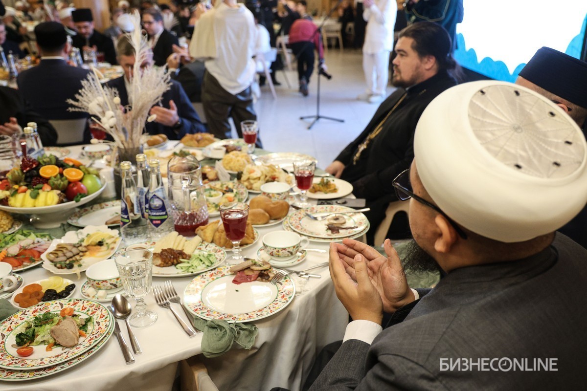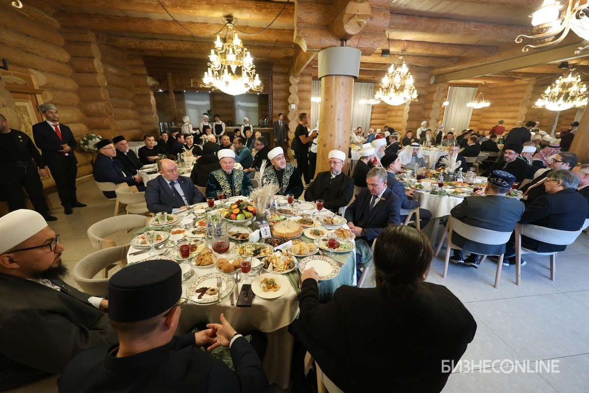 По традиции первым ужином прочитали Коран, его рецитацию совершил ученик Самигуллина, участник всех праздничных намазов с участием Минниханова Саидкамал Суенов, а дуа вознес имам-хатыб мечети Аль-Марджани Равиль Зуферов. Все выступления были на татарском, а имам-мухтасиб Тукаевского района Инсаф Саубанов переводил речи на арабский язык.