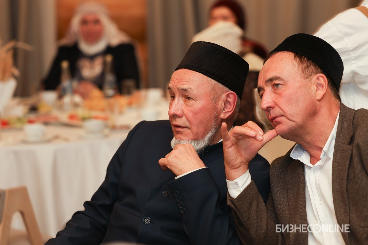 Председатель совета директоров группы компаний «Барс Медиа» Камиль Гараев рассказал, что с 1994 по 2003 год очень плотно работал в Уфе, тогда и познакомился с Талгатом хазратом. «Это человек, стоящий в первых рядах татарского народа. Он друг и татарскому языку, и музыке, и истории», — отметил он. С огромным букетом цветов пришла поздравить хазрата президент союза дизайнеров РТ Лариса Фомина. По ее словам, благословение на создание организации дал лично верховный муфтий — после его дуа дела сразу пошли в гору.