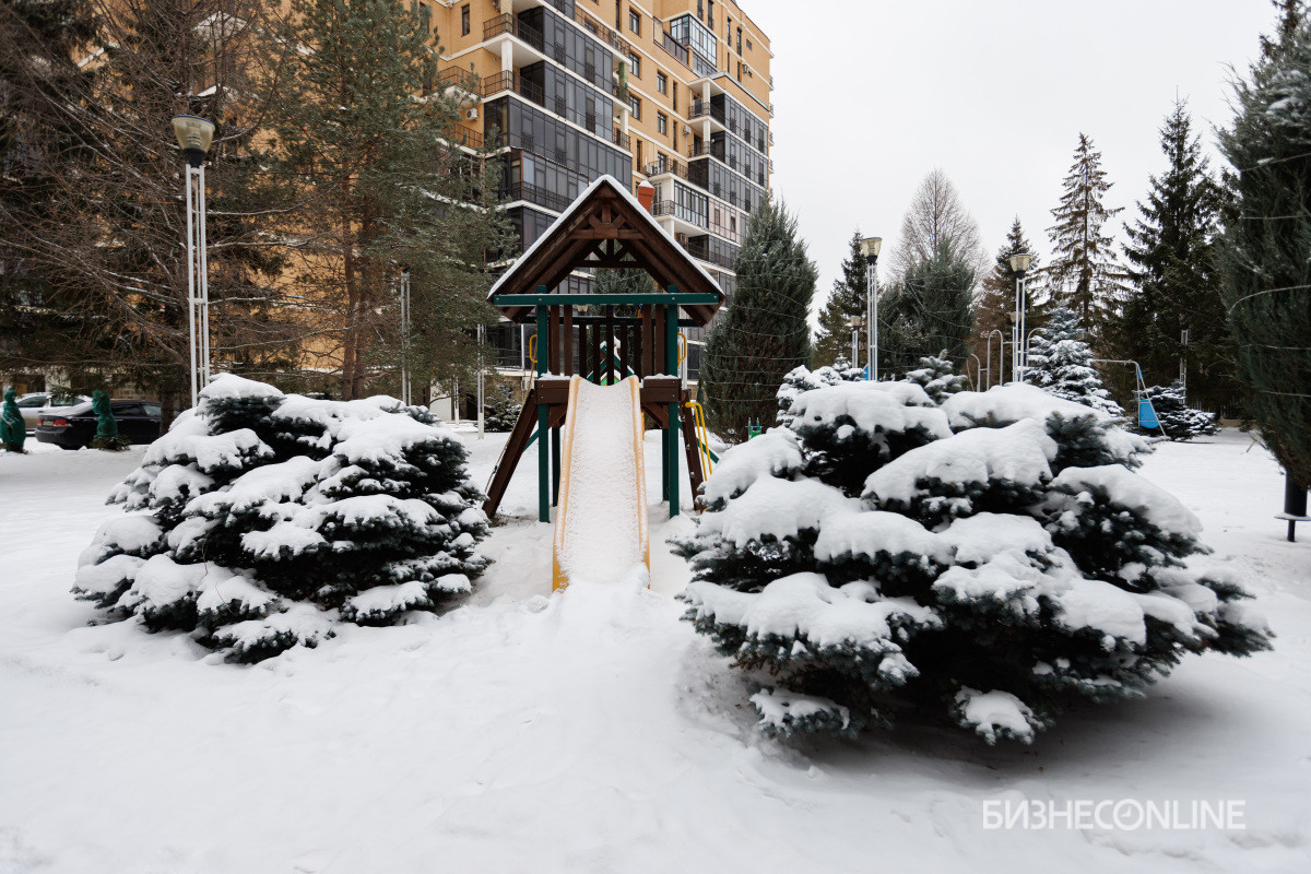 — Система безопасности двухуровневая. На двух въездах круглосуточно работает живая охрана. То есть это не просто шлагбаумы с видеокамерами, а люди, которые видят каждую машину, въезд строго по номерам авто собственников квартир и по пропускам. Гостей пропускают по звонку. Территория дома огорожена и подъезды — непроходные, находится под постоянным видеонаблюдением, в том числе в лифтах. Охранники регулярно обходят двор. Кроме того, сам район — один из самых безопасных в городе из-за близости административных зданий и силовых структур.