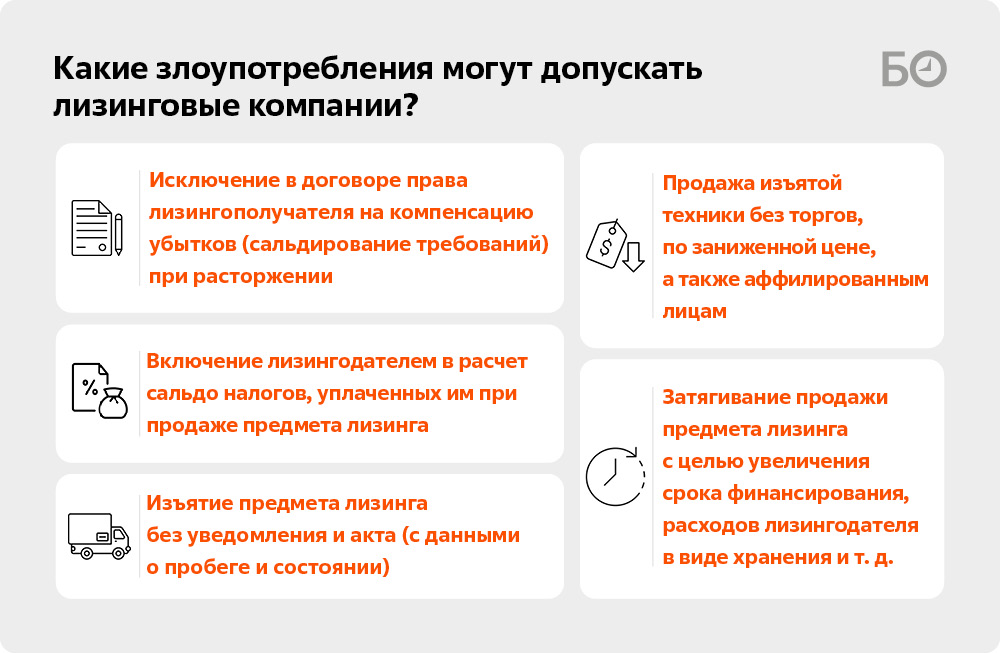 К наиболее типичным злоупотреблениям со стороны лизинговых компаний Уразаев относит:
