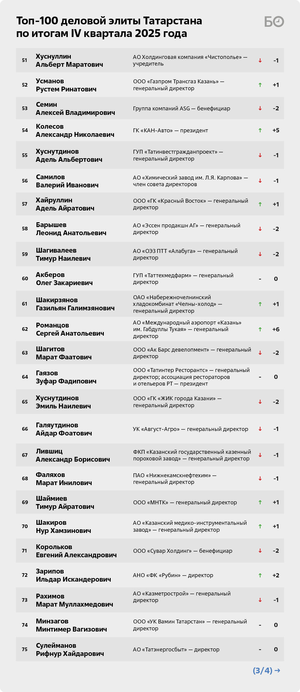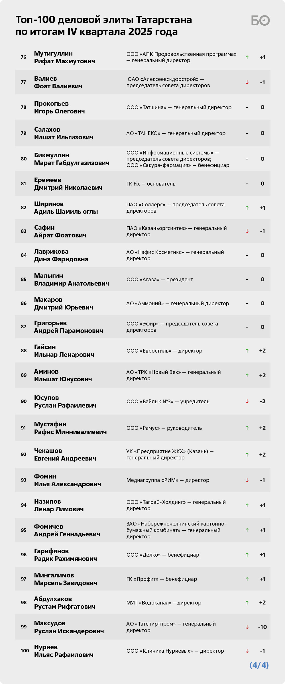 На 2-ю строку по итогам IV квартала 2025 года перемещается гендиректор ПАО «Татнефть» Наиль Маганов