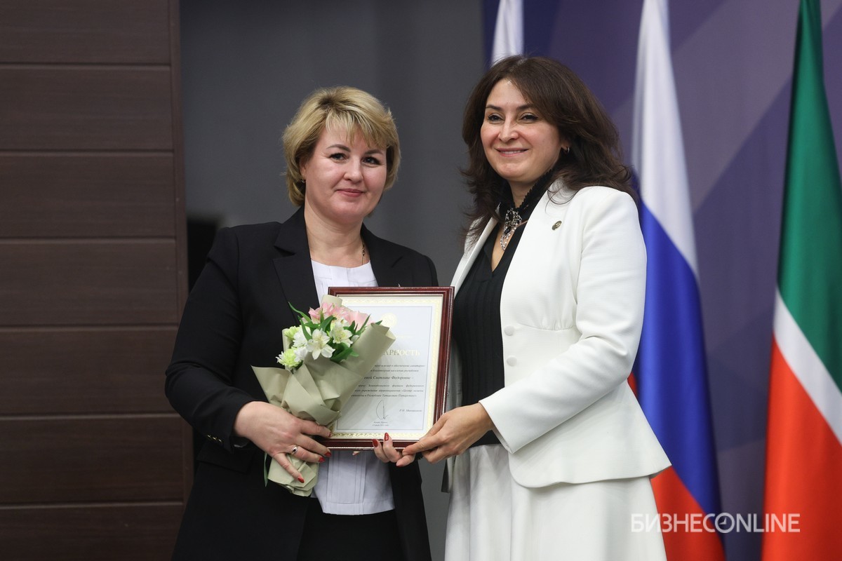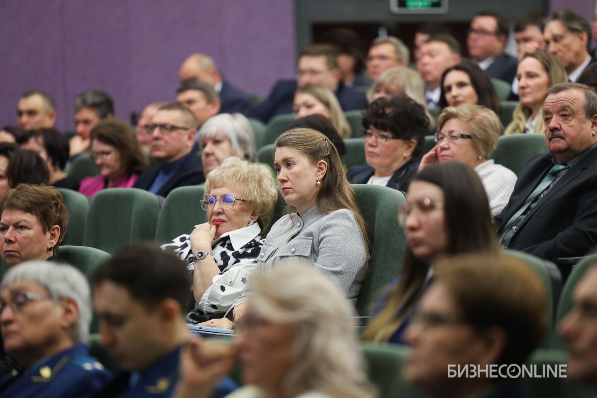 Итоговая коллегия Роспотребнадзора по Татарстану по работе в 2025 году прошла с традиционной для ведомства четкостью: к 10 часам утра зал был полон, свои места заняли руководители министерств и ведомств, сотрудники Роспотребнадзора, главврачи казанских и республиканских больниц. Спустя еще пару минут поднялись на сцену гости президиума — вице-премьер РТ Лейла Фазлеева, главный федеральный инспектор по РТ Виктор Демидов, председатель ассоциации «Совет муниципальных образований РТ» Экзам Губайдуллин вместе с хозяйкой мероприятия — главным санитарным врачом по Татарстану Мариной Патяшиной. По правую руку от главы Роспотребнадзора разместилась главврач центра гигиены и эпидемиологии РТ Елена Сизова.