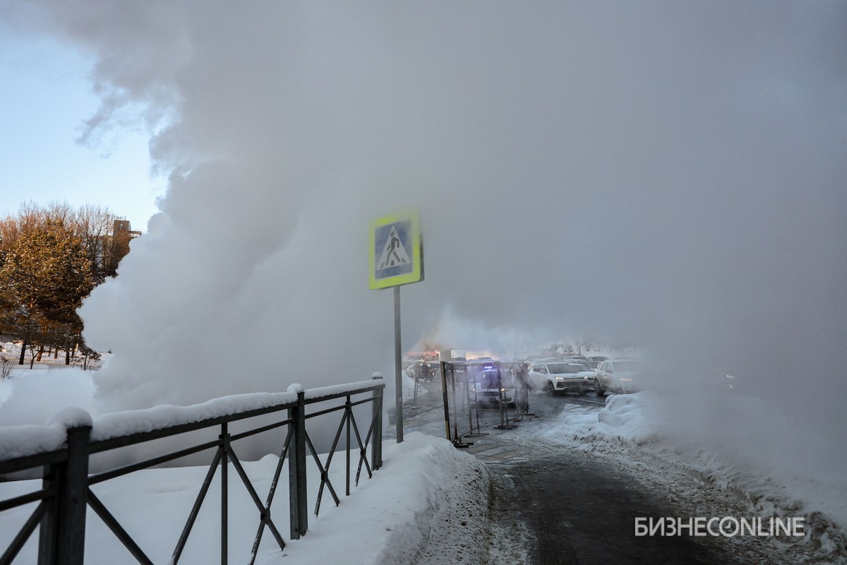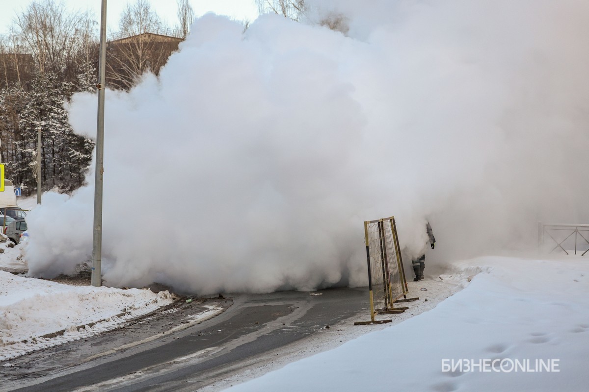 «Где-то через 20–30 минут после аварии перекрыли трубу. Но она ж гигантская — 700 миллиметров в диаметре! Плюс давление огромное там, поэтому до сих пор вытекает [вода]», — объяснял сегодня работник тепловых сетей на месте серьезной аварии в Вахитовском районе Казани. На тепловоде №4 на улице Вишневского, который отапливает Азино, случился прорыв, причем сразу в двух местах. Дорогу окутал туман из пара, а улицы у станции метро «Суконная слобода» залило кипятком. По предварительным данным, труба не выдержала дополнительной тепловой нагрузки — температуру воды в системе подняли из-за пришедших морозов. Азино сейчас отапливают по резервной схеме, а аварийные работы должны завершиться к девяти вечера.