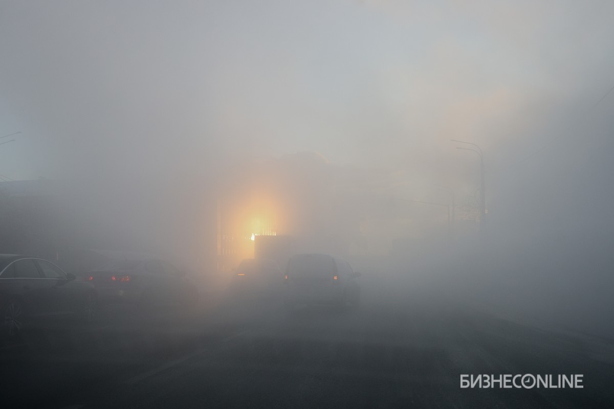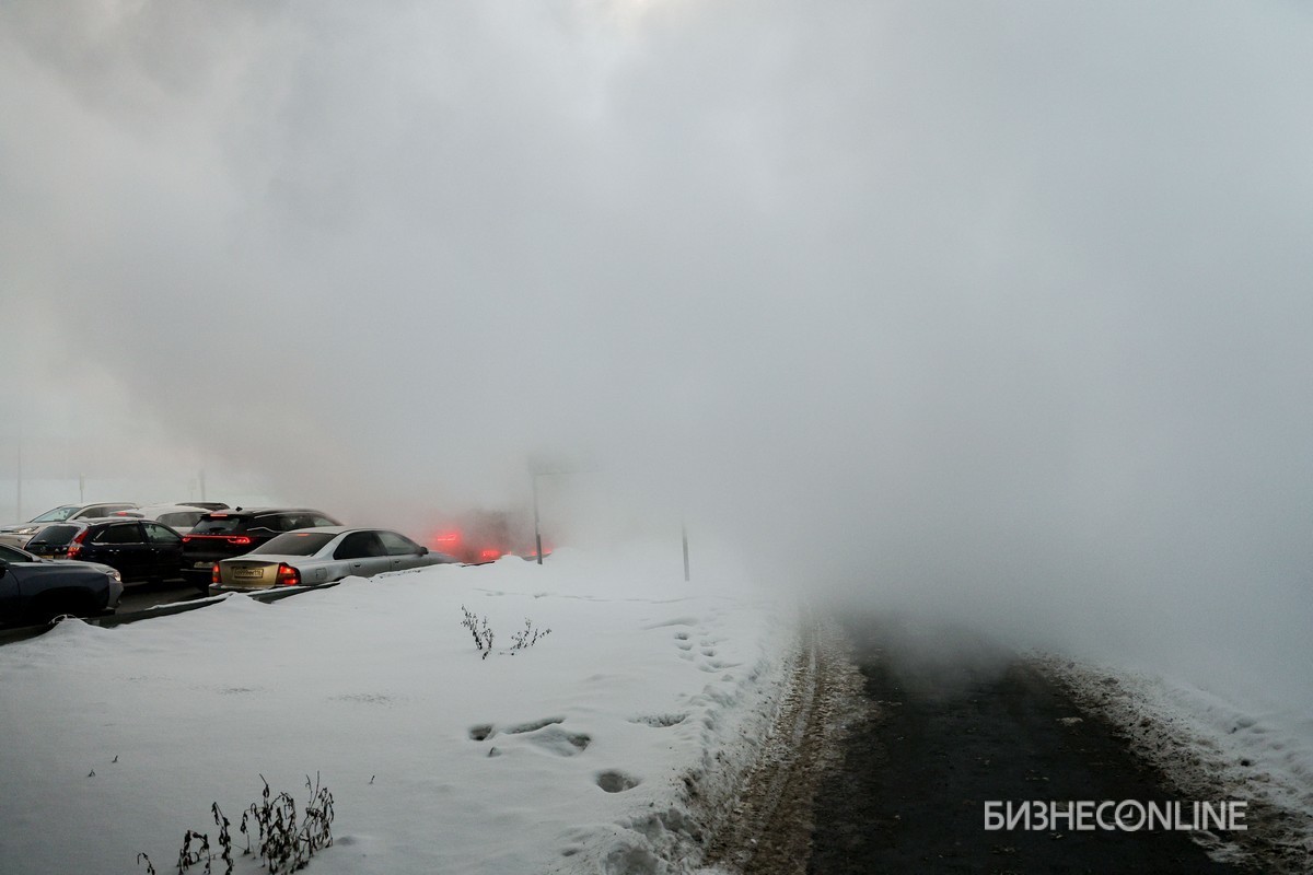 «Суконная слобода» и ее окрестности сегодня днем оказались в плотном тумане. Из-за ухудшения видимости быстро возник затор протяженностью около 2 километров