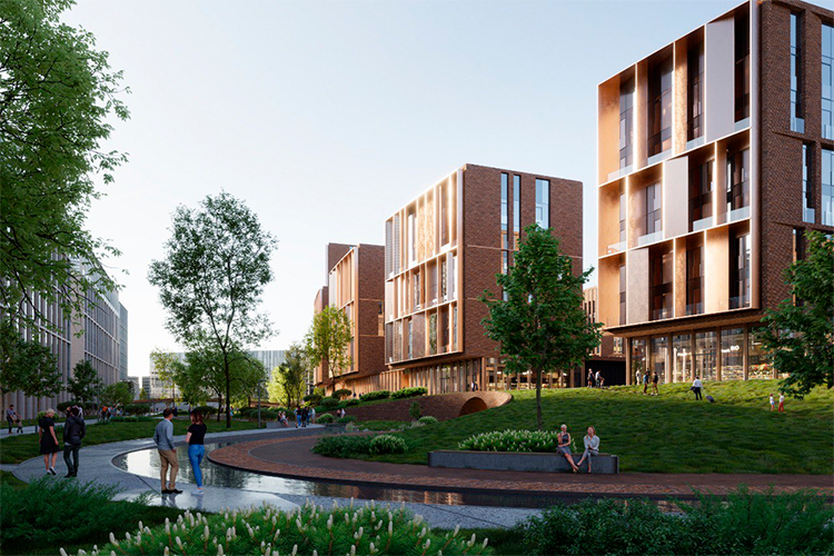 Архитектура от компании Sergey Skuratov Architects, предложенная для нового микрорайона, отличается от традиционных подходов. Она не только современная, но и в каком-то смысле вневременная: нет вычурных экстравагантных решений, которые быстро потеряли бы свою актуальность. Здесь много внимания уделяется пространству. Общая площадь застройки составит 312 тыс. кв. м, из которых более 250 тыс. — жилье.