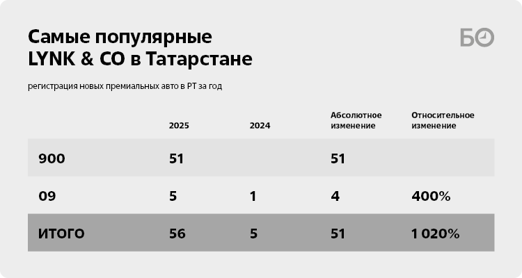 В 2025 году на учет в нашем регионе встали 51 Lynk & Co 900. Этот автомобиль совместное произведение китайского автопроизводителя Geely и шведского Volvo Cars. Образ Lynk & Co 900 — это смесь британского Range Rover и китайского земляка Li L9. Автомобиль имеет запас хода более 1 тыс. км, причем это параллельно последовательный гибрид. Из особенностей ТС можно выделить режим «краба», т. е. машина имеет возможность двигаться боком за счет поворота задних колес, а также автопилот с лидаром на крыше.