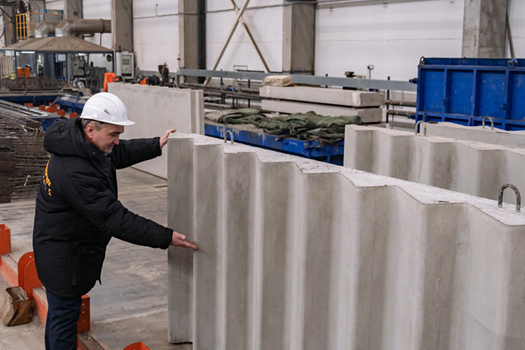 «На заводе изготавливаются все несущие и ограждающие элементы: стеновые панели, фундаментные плиты, плиты балконные, лестничные марши, лестничные площадки, лифтовые шахты, диафрагмы жесткости, электропанели, щелевые плиты, дорожные плиты»