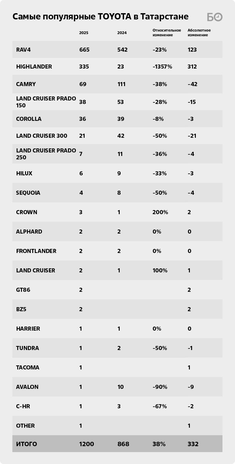 Несмотря на то что японский бренд Toyota официально покинул российский рынок, а все его активы были проданы оборонному концерну «Алмаз-Антей», продажи автомобилей данного бренда, на удивление, растут. Любителей культовой марки спасает не только параллельный импорт, но и поставки таких автомобилей из Китая, где они и выпускаются. За прошлый год продажи Toyota поднялись на 38% — с 868 до 1,2 тыс. авто. Причем 1 097 автомобилей были собраны в Китае, только 90 — на родине в Японии.