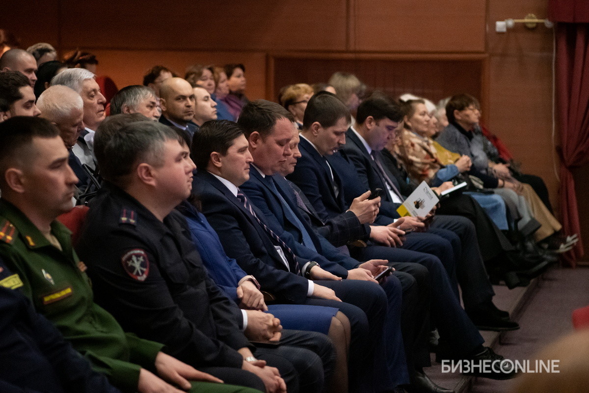 Далее гости переместились в актовый зал, где в самом начале случилась поломка — пропал звук у гимна, но зал не растерялся и громко запел. «Оригинально», — оценил Мухаметшин, чем вызвал смех в зале. Искандаров вышел к трибуне с докладом о социально-экономическом развитии Менделеевского района.