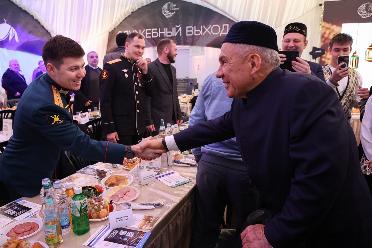 По традиции первым выступал Рустам Минниханов. По-татарски он поблагодарил Равиля Гайнутдина за то, что в «Шатре Рамадана» дают возможность «показать республику». А уже по-русски Рустам Нургалиевич обратился к сидящим бойцам и Героям России. «Страна наша как единой целое борется с неонацизмом. Конечно, пример наших героев очень важен», — подчеркнул он. По мнению Минниханова, в это «тяжелое время надо показать единение». «Единение внутри России, единение с миром. В такой сложной ситуации кто? Исламский мир остался вместе с Россией», — сказал раис РТ. Он пожелал всем мира, согласия, а также добавил: «Надеемся на победу у нас и все, что творится за пределами нашей страны, устаканится».