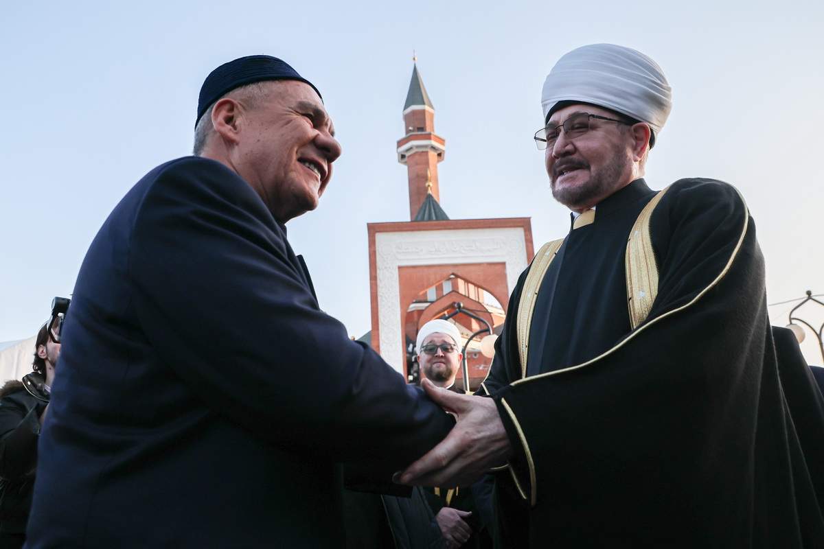 Тему в своей речи продолжил Равиль Гайнутдин. «Молю Аллаха даровать нам, главное, спокойствие и мир в душах наших, в наших головах и, конечно, в мире. То, что сегодня видим на Ближнем Востоке, в Иране — это, безусловно, для всех нас огромная трагедия, огромная боль», — сказал он. По словам Гайнутдина, в разных регионах «по чьим-то интересам» идут вражда и зло. «Молим, чтобы наш праздник Ураза-байрам прошел без бомбежек, без войны и на Ближнем Востоке, и в других концах земного шара, остановились орудия, чтобы мы смогли почувствовать истинное наслаждение мира и спокойствия во время нашего праздника и далее установления мира на земле», — заявил председатель ДУМ РФ.