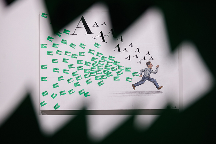 В малом зале галереи открыта выставка казанского художника Марка Бермана «Я курьер. Я так вижу». Автор, получивший художественное образование в Йошкар-Оле, год назад сменил размеренный ритм Марий Эл на масштаб миллионного мегаполиса. Чтобы зарабатывать себе на жизнь в Казани, он стал курьером службы доставки. При этом его велосипед, намотавший за год более 10 тыс. км, превратился в инструмент картографирования «невидимой» части города. Марк — яркий представитель новой волны регионального искусства. В своей практике он сочетает графические техники с элементами поп-сюрреализма, часто черпает вдохновение в комиксах, мультфильмах, уличных граффити, но использует классические живописные приемы.