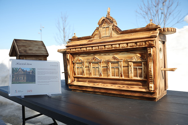 Презентация проекта прошла в павильоне детского парка «Елмай». Пока взрослые говорили об экологии, дети с любопытством разглядывали резные домики, представленные на импровизированной выставке. 12 из них воссоздают облик утраченных деревянных домов Казани конца XIX века.