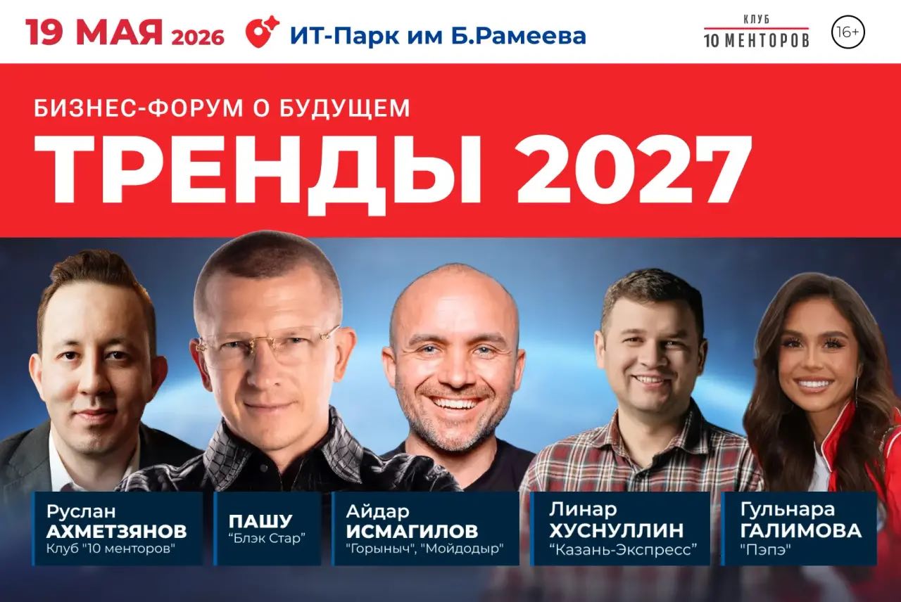 «Многие компании закроются. На каком-то этапе ты должен пересмотреть свою бизнес-модель, сделать вираж, посмотреть на свой бизнес другими глазами», — говорит о ценности будущего бизнес-форума «Тренды-2027» его организатор и основатель клуба предпринимателей «10 менторов» Руслан Ахметзянов. Уже 19 мая в казанском IT-парке им. Рамеева пройдет одно из крупнейших деловых событий РТ, посвященное управлению компаниями и ключевым трендам ближайших двух лет. В основной программе форума нет бизнес-тренеров, только предприниматели, которые остро чувствуют рынок. Хедлайнер — сооснователь Black Star Пашу. О чем расскажут Линар Хуснуллин, Айдар Исмагилов, Гульнара Галимова и что получат участники практически по цене билета на концерт — в нашем интервью.