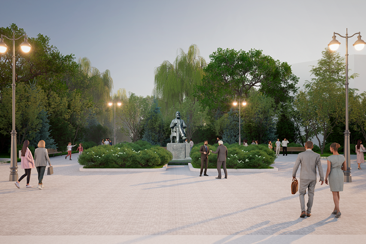 Дополнят атмосферу наружное освещение, декоративная подсветка деревьев и памятника. Также у монумента появится информационный стенд, посвященный химику.