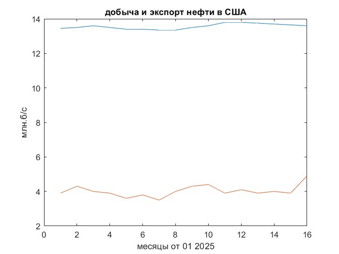 Предполагаемый рост экспорта, который можно заметить на графике, при снижении добычи и росте энергопотребления (по данным американского минэнерго, примерно на 2% в год в последнюю пятилетку) означает «проедание» стратегических запасов, что Штаты и делают — запускают в сутки в оборот по 1 млн баррелей нефти из стратегических запасов.
