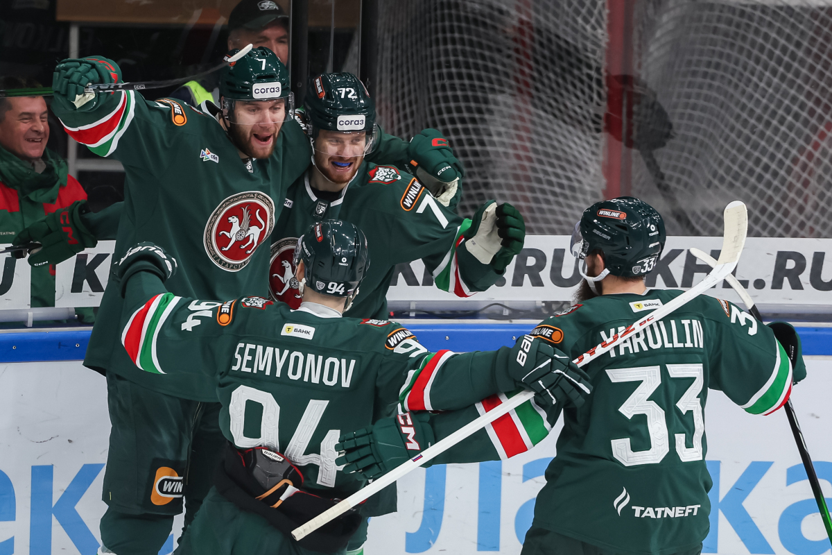 В концовке второго периода «барсы» увеличили преимущество в счете — большинство реализовал Григорий Денисенко, забросив броском в касание после передачи Митчелла Миллера. Отметим, что новичок казанцев остается самым результативным игроком «Ак Барса».