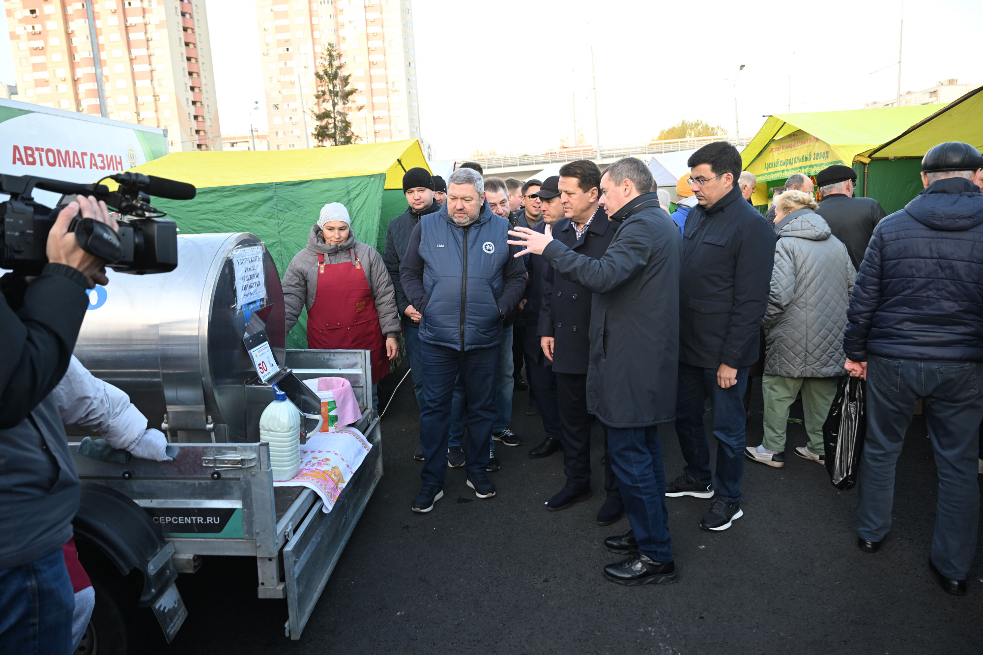 «В Казани на 14 площадках работают субботние ярмарки, в том числе новая площадка открылась на территории „Салават Купере — 2“, на улице Альфии Авзаловой. Там небольшая прекрасная точка, на которой сейчас достраивается магазин, закрытый павильон — он будет работать ежедневно. Также на площадке на улице Беломорской провели капитальный ремонт. На проспекте Ямашева в этом году тоже хороший ремонт сделали, асфальтное покрытие обновили — здесь сухо, чисто, комфортно», — рассказал глава минсельхоза РТ.