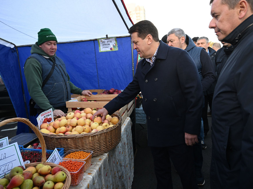 Градоначальник осмотрел торговые ряды и ознакомился с ассортиментом, а также пообщался с производителями, фермерами и покупателями.
