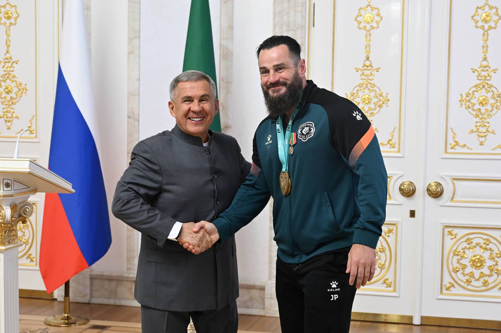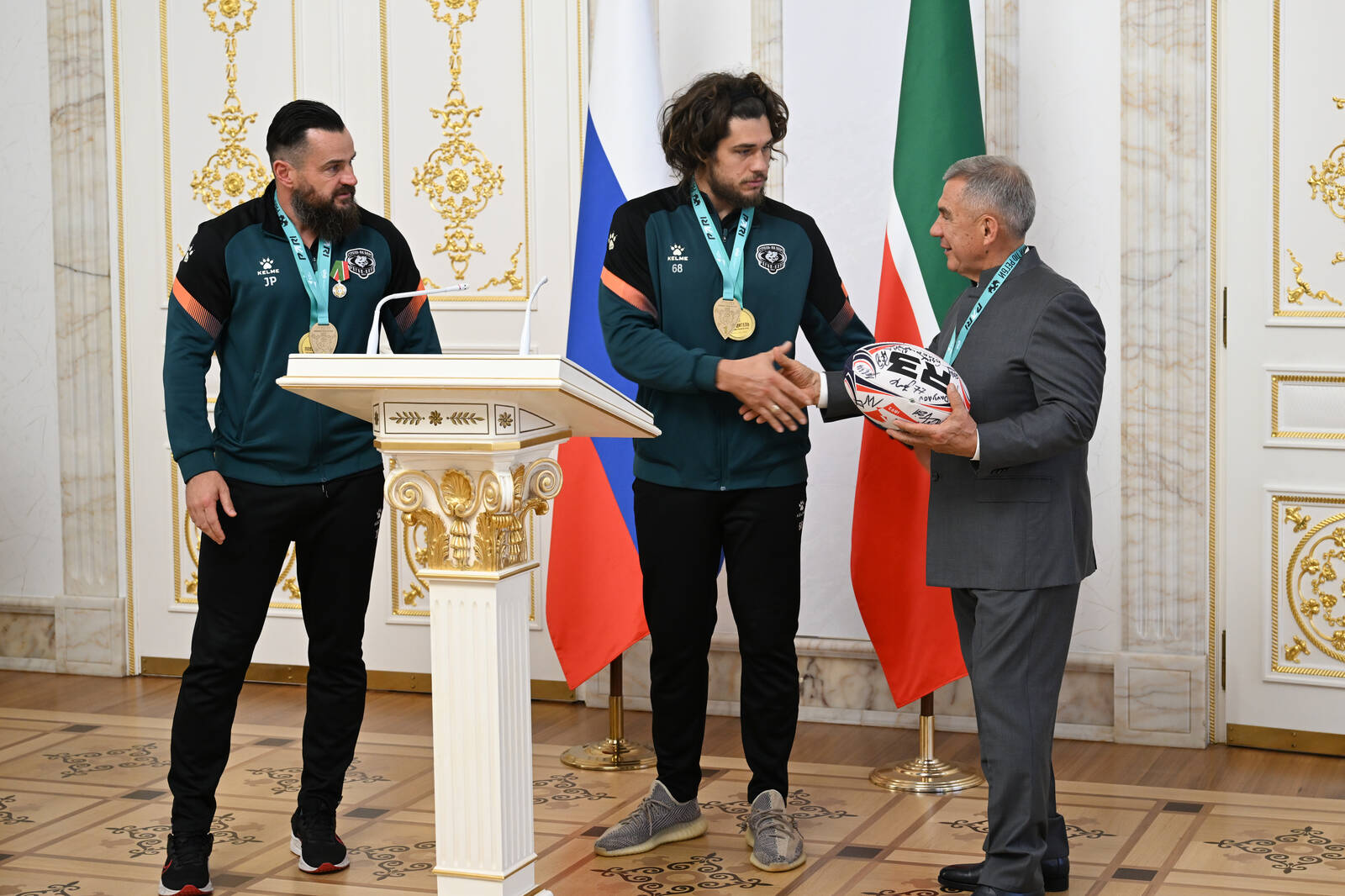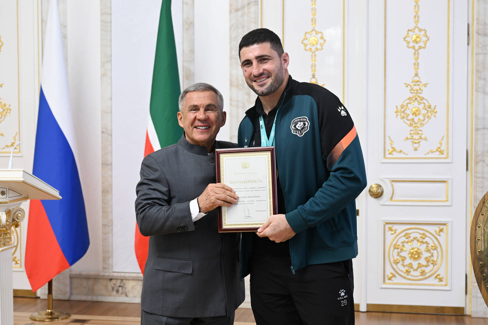 Сегодня в казанском Кремле прошла встреча раиса РТ Рустама Минниханова с регбистами команды «Стрела — Ак Барс». Клуб в этом сезоне стал чемпионом России по регби-15, взял Кубок и Суперкубок РФ.