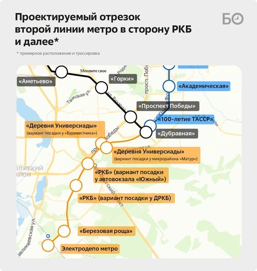Институт пространственного планирования РТ, разработчик мастер-плана Казанской агломерации, по просьбе «БИЗНЕС Online» оценил варианты размещения двух новых станций второй ветки метро: «Деревня Универсиады» и «РКБ». Напомним, для каждой проектировщики ГУП «Татинвестгражданпроект» подготовили по два места размещения: