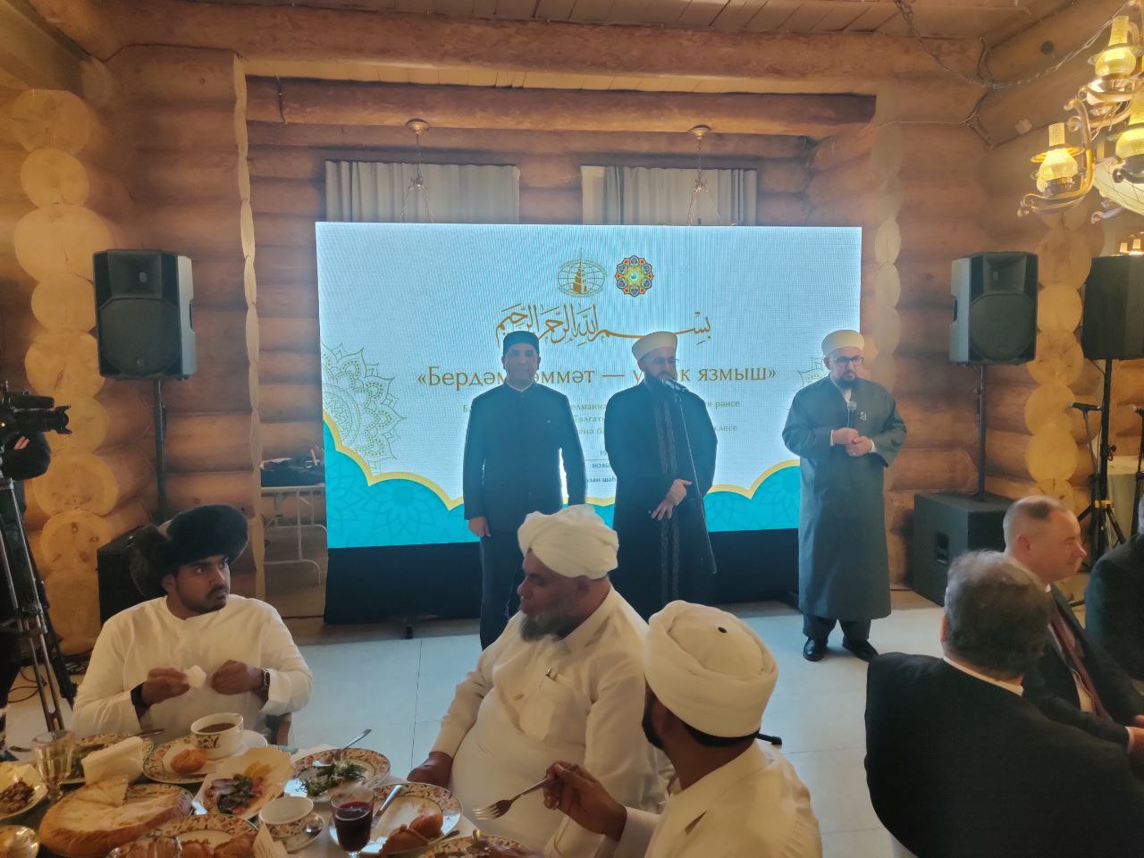 Мероприятие началось с чтения Корана, после чего прозвучали поздравительные выступления. В своей речи Таджуддин перешел на арабский, и переводчик — имам-мухтасиб Тукаевского района Инсаф Саубанов — переводил его уже на татарский язык. Верховный муфтий рассказал об истории принятия ислама Волжской Булгарией, взаимоотношениях представителей религий и современном положении мусульман. На приеме выступили и другие гости. Вечер сопровождался религиозными песнопениями.