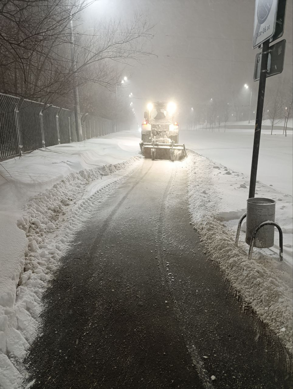 Днем на очистку снега вышли 349 единиц техники, ночью их число выросло почти в 2 раза. Также дороги и улицы чистили полсотни дорожных рабочих.