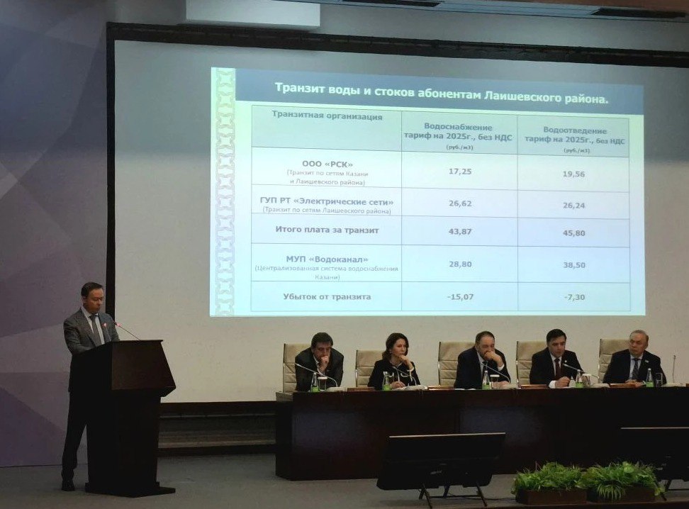 Так, в 2026 году совокупный платеж двум транзитным организациям за транспортировку воды в Лаишевский район может составить 43,87 рубля, тогда как тариф казанского водоканала составляет 28,80 рубля. Таким образом, убыток от одного кубометра воды, доставляемого в Лаишево, составит более 15 рублей.