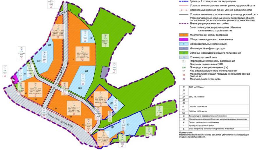 Площадь осваиваемой территории составит 101,3 гектара. Развивать ее планируют в два этапа. Новый массив должен вместить 700 тыс. кв. м многоквартирного жилья. Всего планируется построить 8 многоэтажек высотностью в 21–45 этажей. Для жителей предусмотрят подземные и наземные паркинги.