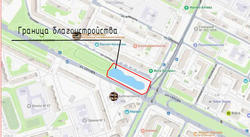 Указанная территория располагается в границах улиц Серова и Восход. Это место заказчик называет спальным районом со слаборазвитыми рекреационными зонами, где не хватает качественного детского оборудования и зон воркаута.